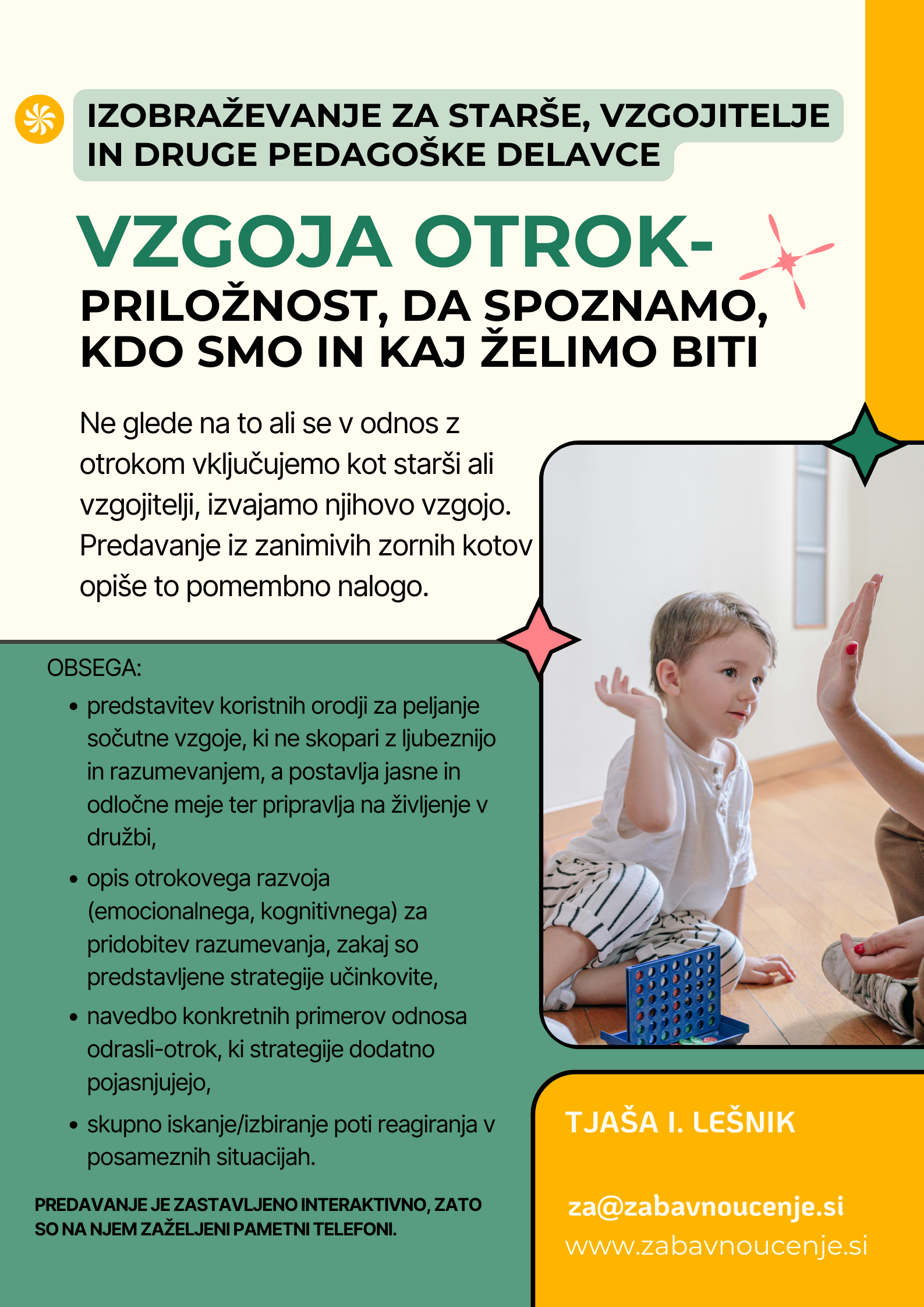 1. PREDAVANJE: VZGOJA OTROK- priložnost, da spoznamo, kdo smo in kaj želimo biti